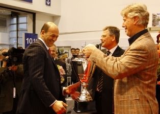 Jan Habets overhandigt de beker aan Hans van Rijsewijk.