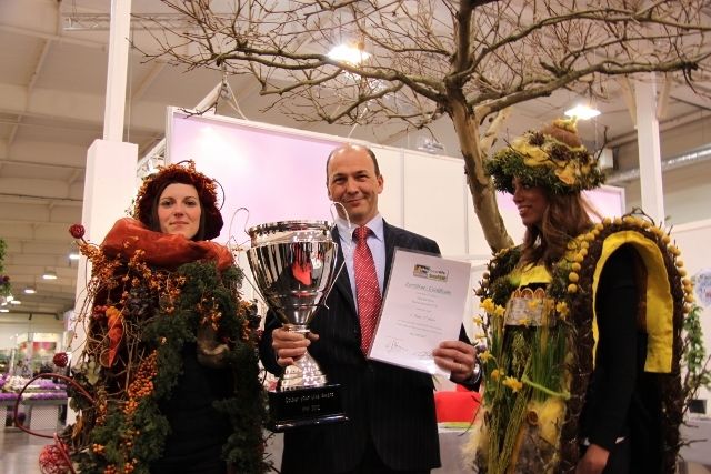 Tijdens de IPM in Essen heeft Van den Berk Boomkwekerijen (Sint-Oedenrode) met The Swing - een gebogen Platanus acerifolia - de Colour Your Life Award 2012 in de wacht gesleept. De prijswinnende The Swing, een natuurlijke parasol waarbij de stam niet in de weg staat, is een samenwerkingsproduct van Van den Berk en toeleverancier Van Roessel Vormbomen (Berkel-Enschot). Hans van Rijsewijk (commercieel manager Van den Berk) ontving uit handen van juryvoorzitter Egon Galinnis (directeur Messe Essen) en Jan Habets (directeur Plant Publicity Holland) de beker en bijbehorende oorkonde. PPH organiseerde dit jaar in samenwerking met de organisatie van IPM de 'Colour your Life Award IPM 2012'. Hierbij draait alles om de meerwaarde van het product. De achterliggende gedachte is dat een plant met een verhaal of een extra informatief weetje eerder zal worden verkocht, dan een product waar deze informatie bij ontbreekt. Het verhaal achter The Swing is dat deze boom door zijn bladerdek veel schaduw biedt en de boom naast het terras wordt geplant, waardoor men geen last van de stam heeft. Van Rijsewijk: "We hadden absoluut niet verwacht deze prijs te winnen, omdat de verhalen achter de plant van alle genomineerden zeer sterk waren. Het idee voor het concept The Swing is geboren in samenwerking met onze toeleverancier, vader en zoon Cees en Thijs van Roessel." De naam en de vorm van The Swing zijn inmiddels gepatenteerd en behalve de Platanus Acerifolia, brengt Van den Berk ook een Carpinus betulus onder dezelfde conceptnaam op de markt. "En er komt ook nog een derde soort, maar dat hou ik nog even geheim", zo liet een trots glunderende Van Rijsewijk op de IPM weten. Behalve de beker en oorkonde krijgt The Swing gratis media-aandacht via televisie en internet. Zo wordt de vormboom in Duitsland een aantal keren getoond op de commerciële zender Mo's Grüne Welt en binnenkort verschijnt er ook een filmpje op YouTube. De kwekers van de 'swingplataan', Cees en zoon Thijs van Roessel, waren zelf niet getuige van de bekroning van hun product. Cees was eerder in de week op de beurs in Essen en zoon Thijs was op skivakantie. Na het horen van het nieuws over de eerste prijs smste hij zeer verheugd vanuit Oostenrijk: 'Super, super, keimooi.'