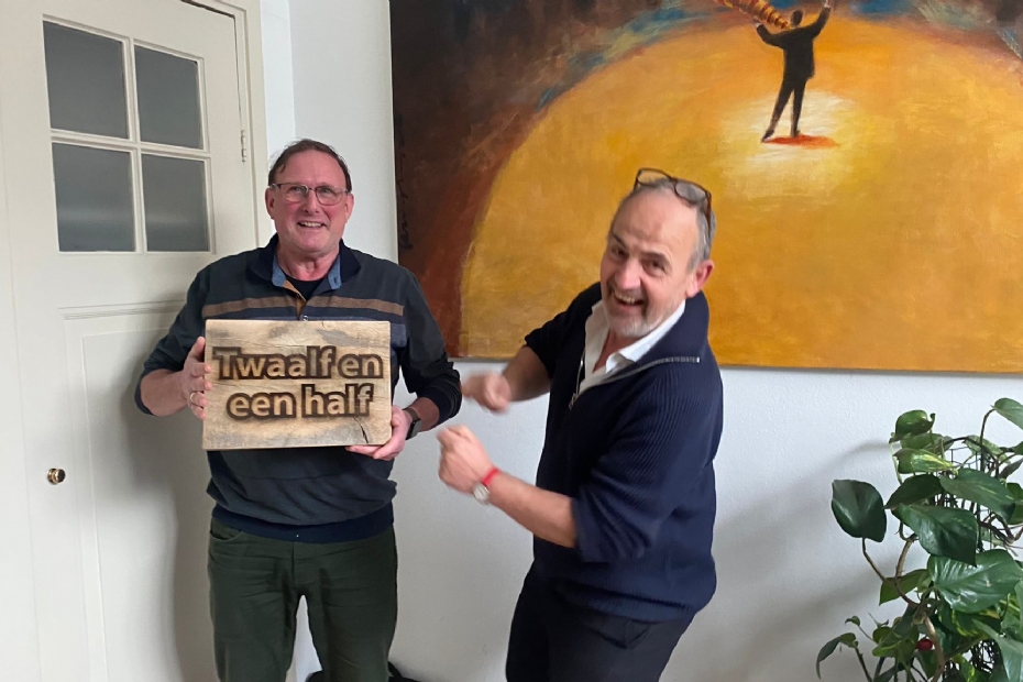 Dit jaar vieren bladmanager Peter Jansen en boekhouder Harry Hijmans beide hun 12,5-jarig jubileum bij Uitgeverij NWST. Een bijzondere mijlpaal die we vierden met taart, confetti en uiteraard een mooi cadeau.