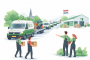 Stoet bedrijfswagens bij verhuizing Herman Vaessen