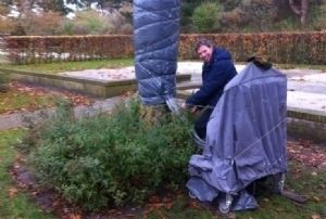 | | Fons van Kuik (WUR) met warmtedeken |