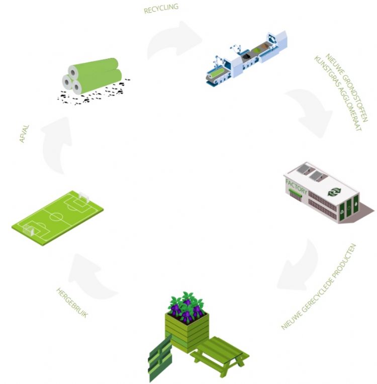 | | Kunstgrasrecycling en hergebruik: zo ziet dat er in een ideale wereld uit, aldus Greenmatter. |