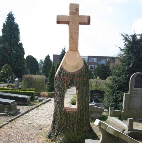 Als extra service naar het kerkbestuur maakte boomverzorger Elroy Janssen Van Klok Projecten van de laatste ceder een waar kunstwerk.