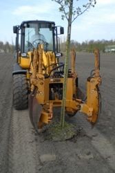 De Optimal 880 en 1100 vinden samen met een compacte en wendbare shovel toepassing bij boomverplantingen voor de herinrichting van boomkwekerijpercelen, parken, landschap- en wegconstructies.